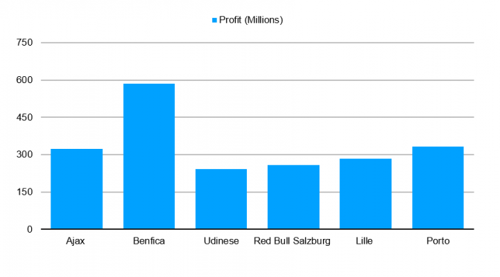 Listed here are the six clubs that have made the biggest profit in the transfer market since 2010 showing partly the strength of their Youth Development system.